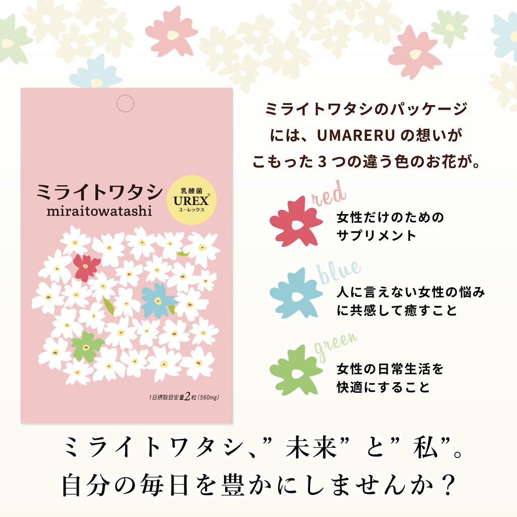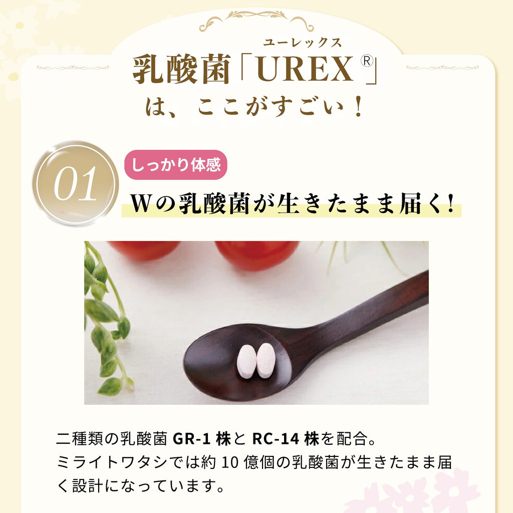 生きた菌96億個(製造時)【ミライトワタシ 乳酸菌ユーレックス】女性のデリケートゾーンに定着する乳酸菌 ミライトはミライトワタシになりました